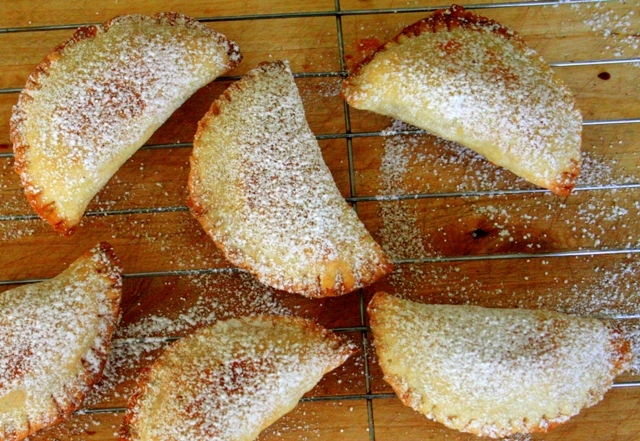 - Τα κόβουμε σε δίσκους και βάζουμε από μια κουταλιά γέμιση στην μέση και διπλώνουμε σε μισοφέγγαρο Πιέζουμε τις άκρες να κολλήσουν.