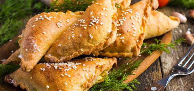 - Αφού τοποθετήσουμε ένα κουταλάκι μυζήθρα στη μεριά του δίσκου, κλείνουμε το φύλλο και σχηματίζουμε μισοφέγγαρα.