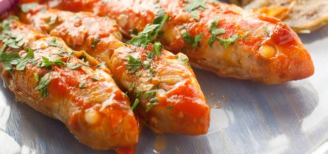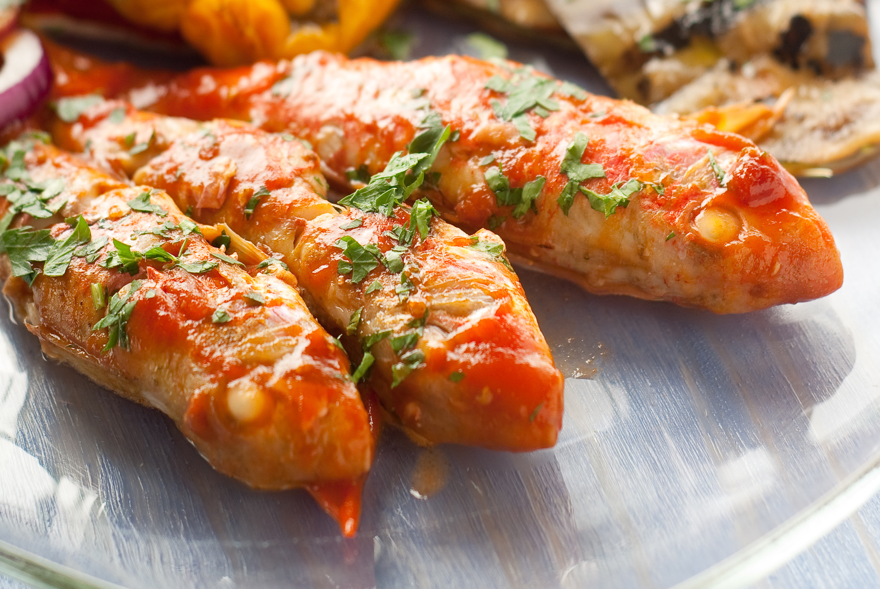 - Αφού την βγάλουμε από τη φωτιά, περιχύνουμε τα ψάρια στο πυρέξ και αφήνουμε μέχρι να κρυώσουν.