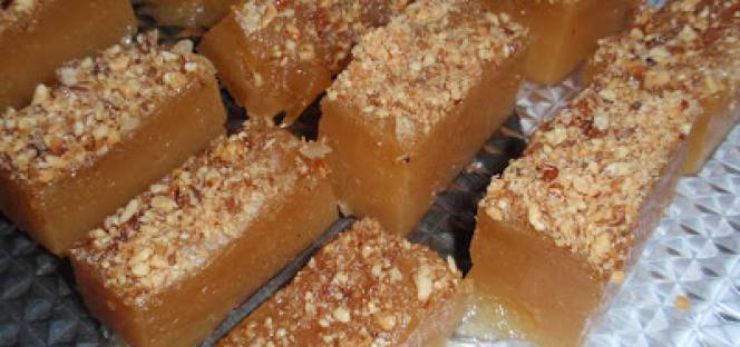 Αδειάζουμε το χαλβά σε ένα ταψάκι ή σε φόρµα ζελέ.